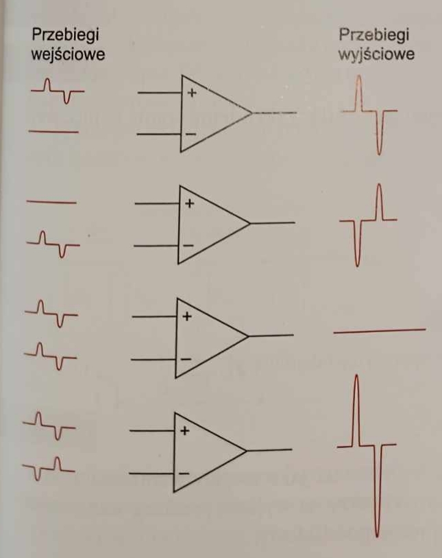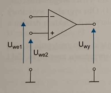 Sygnał doprowadzony między zaciski wejściowe wzmacniacza nazywa się rożnicowym. Zmiany tego sygnału powodują proporcjonalne zminany sygnału wejściowego. Charakterystyczną cechą wzmacniacza operacyjnego jest to, że doprowadzenie do obu jego wejść sygnałów identycznych pod względem amplitudy, częstotliwości i fazy powoduje powstanie na wyjściu sygnału równego zero. Przebiegi sygnału wyjściowego dla charakterystycznych przebiegów sygnału wejsciowego przedstawionego na rysnuku.