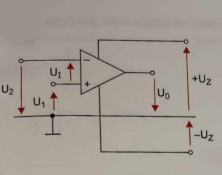 - wejście 2 - oznaczone znakiemi„+” tzw. nieodwracające - doprowadzenie sygnału wejściowego na ten zacisk powoduje wzmocnienie go bez zmiany jego fazy.