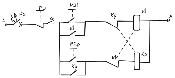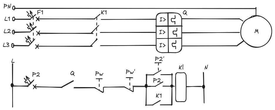 zrobić na podstawie: https://iautomatyka.pl/jak-czytac-schematy-elektryczne-i-akpia-3-styczniki/
